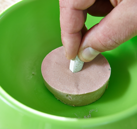 Potreste anche nascondere la pastiglia in una cucchiaiata di formaggio cremoso o di paté, oppure avvolgerla con una fettina di carne.