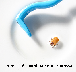La tecnica migliore è rimuovere la zecca con un movimento rotatorio, che stacca la bocca della zecca dalla cute e agevola la completa fuoriuscita dell’insetto.